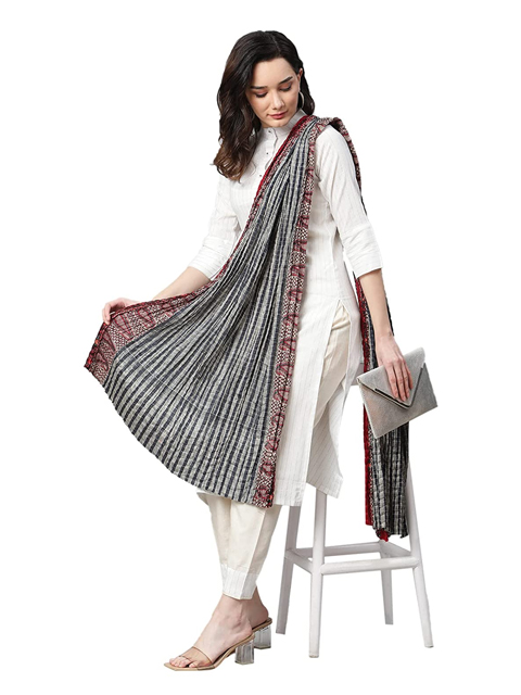You can never go wrong with a simple and chic off white kurti. It has a round neckline with quarter sleeves and side slits. The kurta has a front button placket that provide ease to wear. The placket and edges of the sleeves have a gota patti lace detailing to give it a subtle spark.