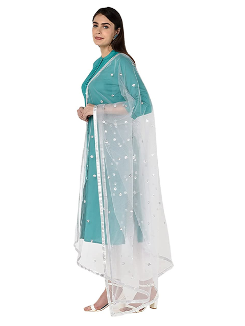 Dupatta Bazaar Women Embellished Silver Net
