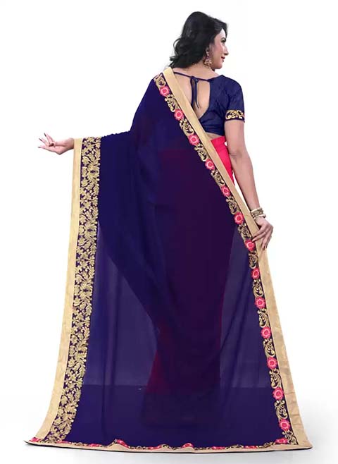 Daily Wear Georgette Saree with Blue & Pink Embroidery
