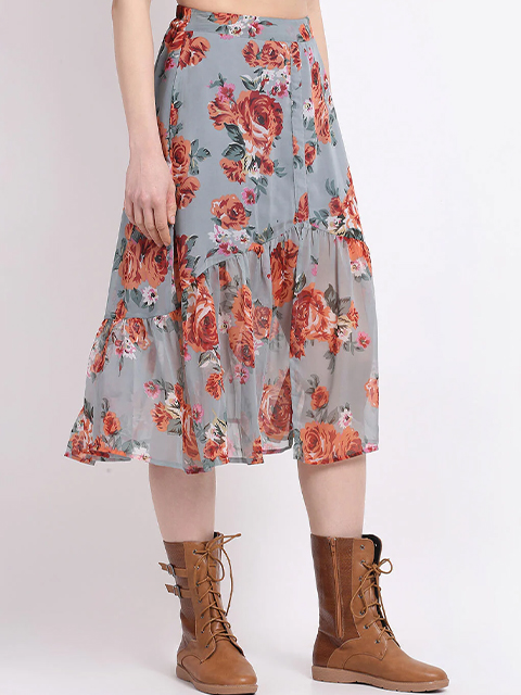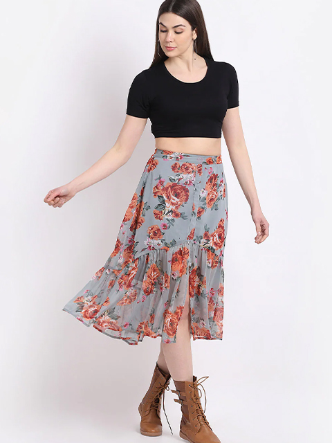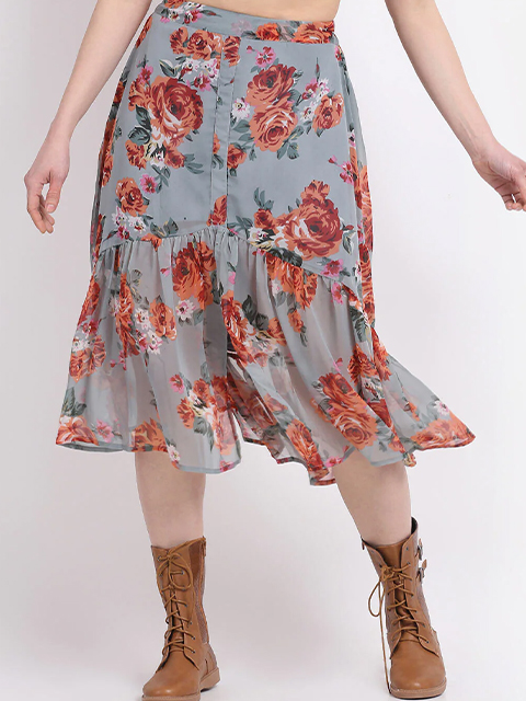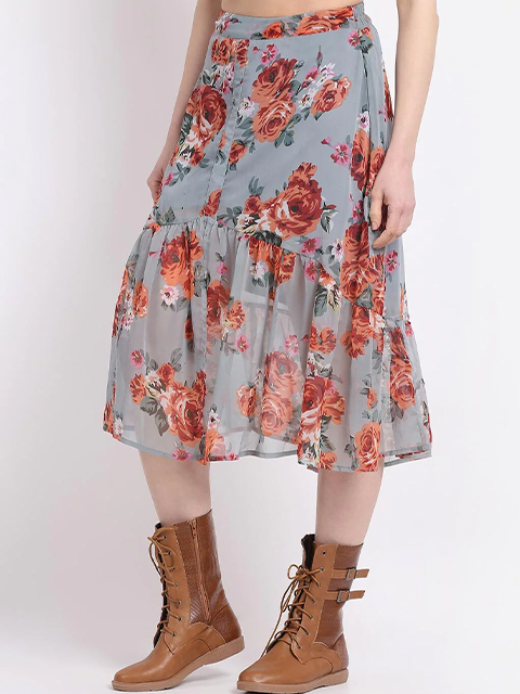 With this red skirt, you'll look pretty in floral. This piece is made of pure cotton and is both comfortable and light at the same time. With a white T-shirt and bellies, this breezy casual wear is ideal for summers.