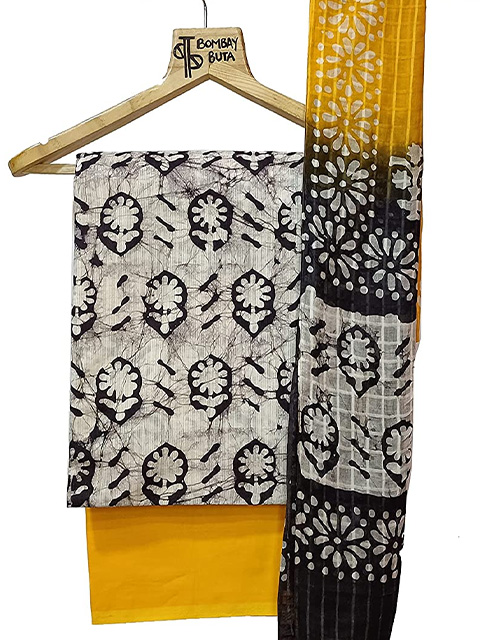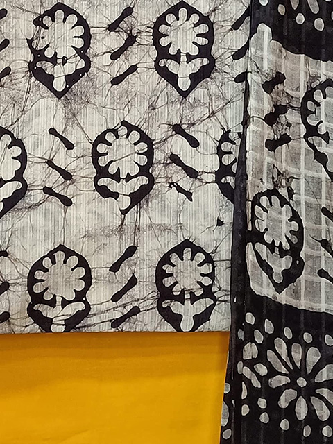 Handcrafted Tie & Dye Batik Design Pure Cotton Cream and Yellow Dress Materials