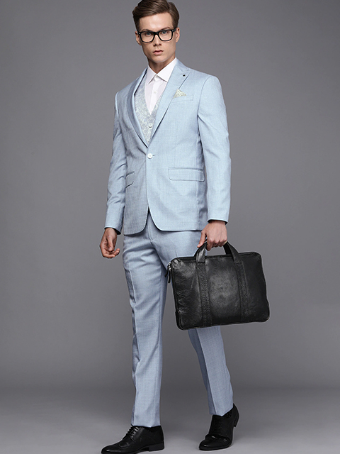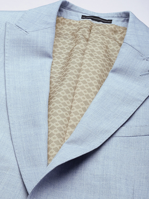 Navy blue solid blazer, has a notched lapel, single-breasted with button closures, long sleeves, three pockets, double-vented back hem, an attached lining with inner welt pockets