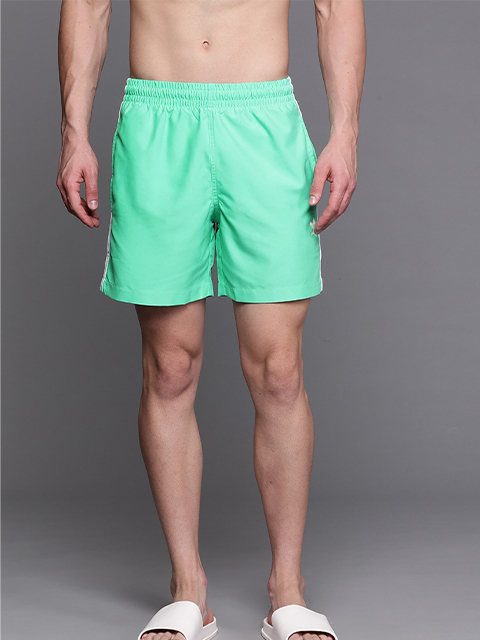 Men Green Solid 3-Stripes Sustainable Swim Shorts