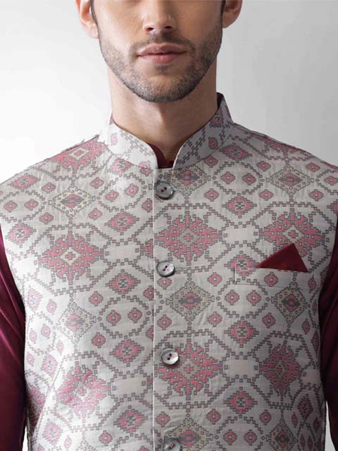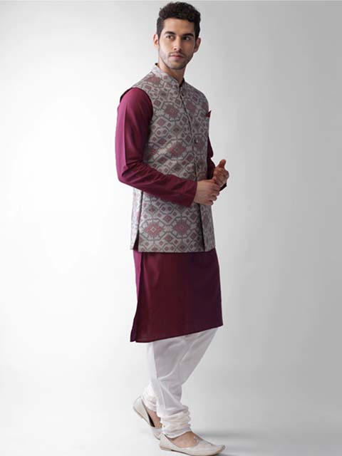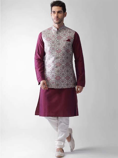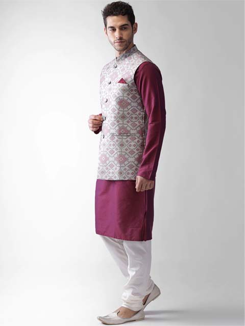 Look edgy by layering your ethnic attire with this well-designed Kurta jacket set.