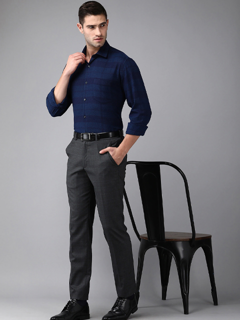 Men Navy Blue Custom Fit Striped Formal Shirt