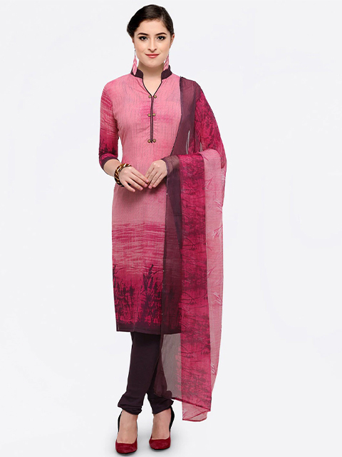 Unstitched dress material includes a top of 2.5 meters, bottom of 2 meters and a dupatta of 2.25 meter. You can get it stitched as per your fitting and choice of design