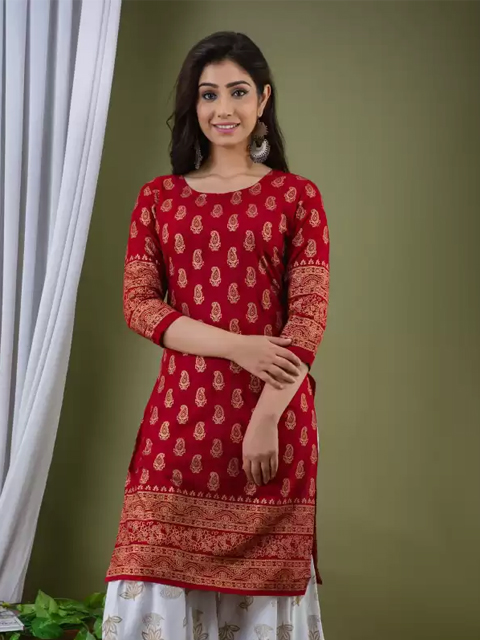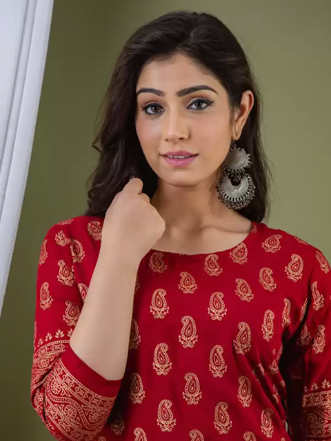 Make a lasting impression with this kurta set. Crafted in a breathable fabric, this stunning kurta and sharara set with dupatta is perfect for festive occasions. Style it with juttis and traditional jewelry to complete the look.
