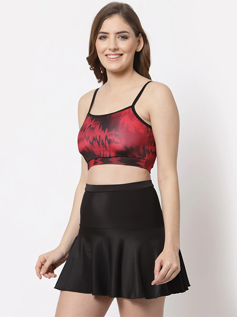 Women Red & Black Printed Swimwear
