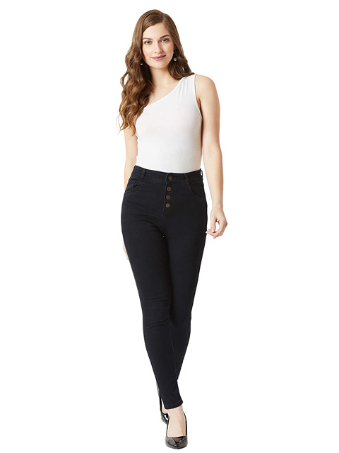 • Fit: Skinny Fit | Stretch: Yes | Pattern: Solid | Length: Regular | Style: Skinny Jeans | Rise: High rise | Distressed: Clean Look | Closure: Button and Fly | Pocket: 5 basic pockets.