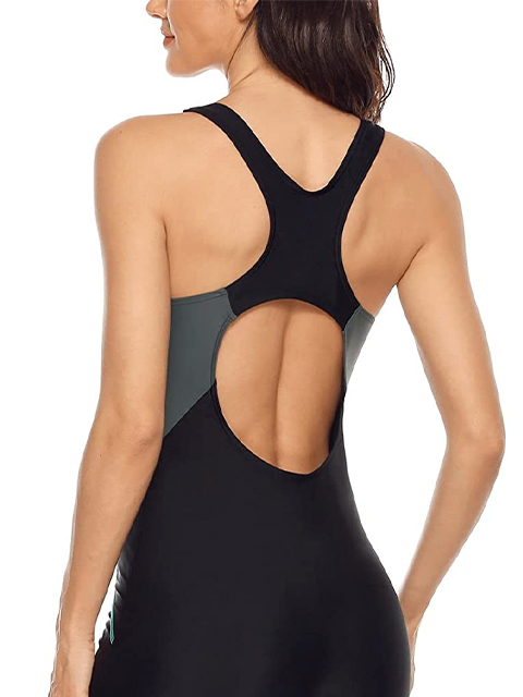 Athletic swimsuit in knee boyleg design provides a modest look and with lining for a comfy touch to skin. Sporty one piece swimwear wirefree padded bras offers slight support and shaping.