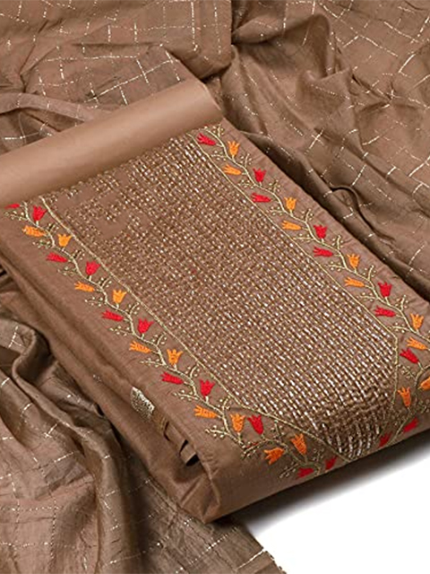 Women's Cotton Slub Khatli Work Unstitched Salwar Suit Dress Material