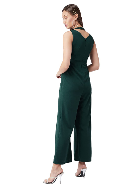 • Style: Pleated/Wide Leg | Pattern: Solid | Fit: Slim Fit | Neck: Halter Neck | Sleeves: Sleeveless | Length: Regular